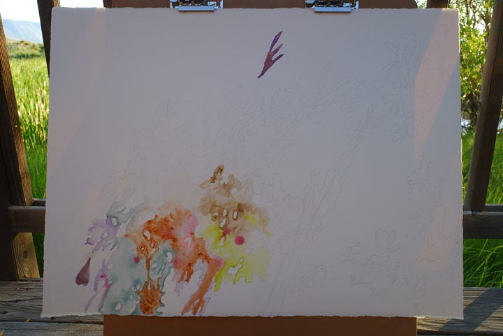 These photos are of a watercolor painting I started at PLAYA, like 2 days before my residency was over. I had been stressing, “what do I do on this BIG piece of paper?!” The answer was obvious, you paint something.